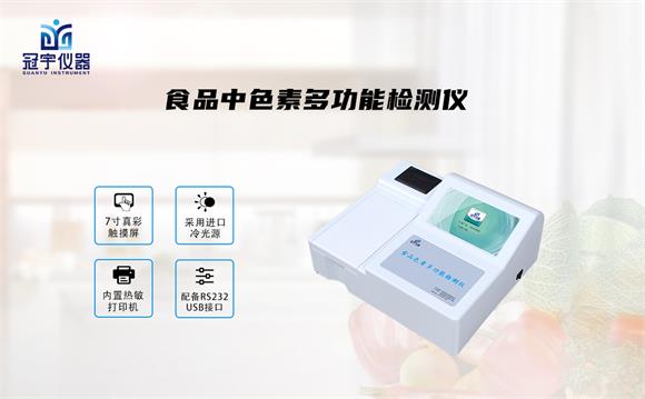 冠宇儀器食品色素多功能檢測儀能夠快速檢測蘇丹紅,靛藍,亮藍,檸檬黃,日落黃,胭脂紅,莧菜紅,誘惑紅,羅丹明B等多種色素含量,杜絕違法超限量添加現象。