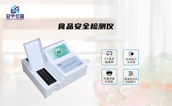冠宇儀器生產(chǎn)的食品安全檢測儀可以有效地對食品中常見的非法添加摻假及有毒有害物質(zhì)進行鑒定和篩查,同時可對食品中農(nóng)藥殘留、有毒有害物質(zhì)、添加劑、非法添加劑、水質(zhì)安全、重金屬殘留、等多種含量進行快速定量測定確保食品安全,并提供多種食品安全檢測儀解決方案。