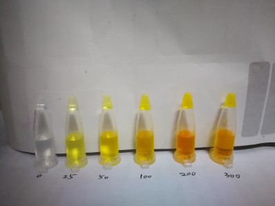 2.2:若溶液顏色呈淡黃色至橘色,則表示樣品中有添加雙氧水。顏色越深表示過氧化氫(雙氧水)含量越高。