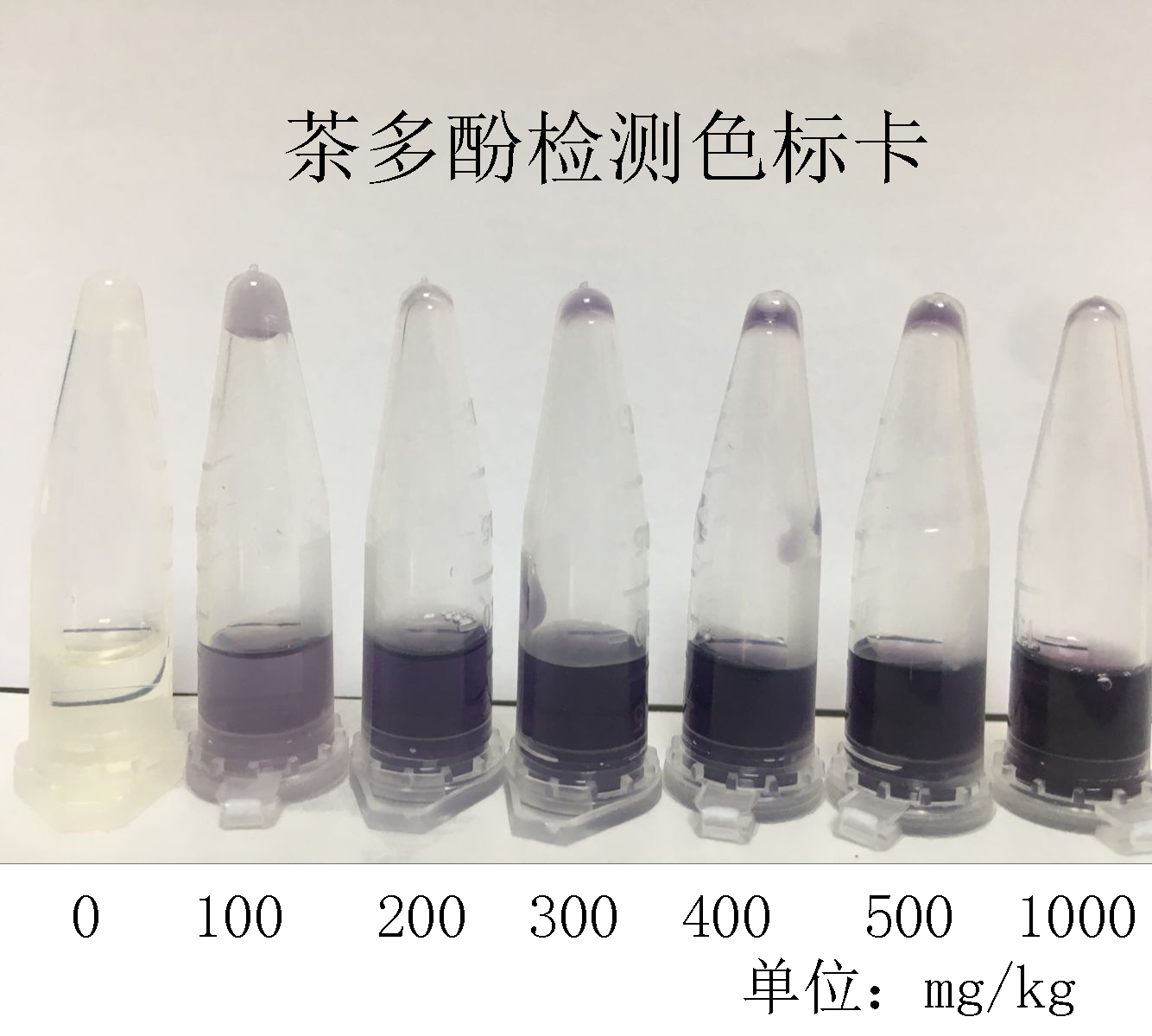 若變藍色或紫色,說明飲料中含有茶多酚。顏色越深表明含量越高。