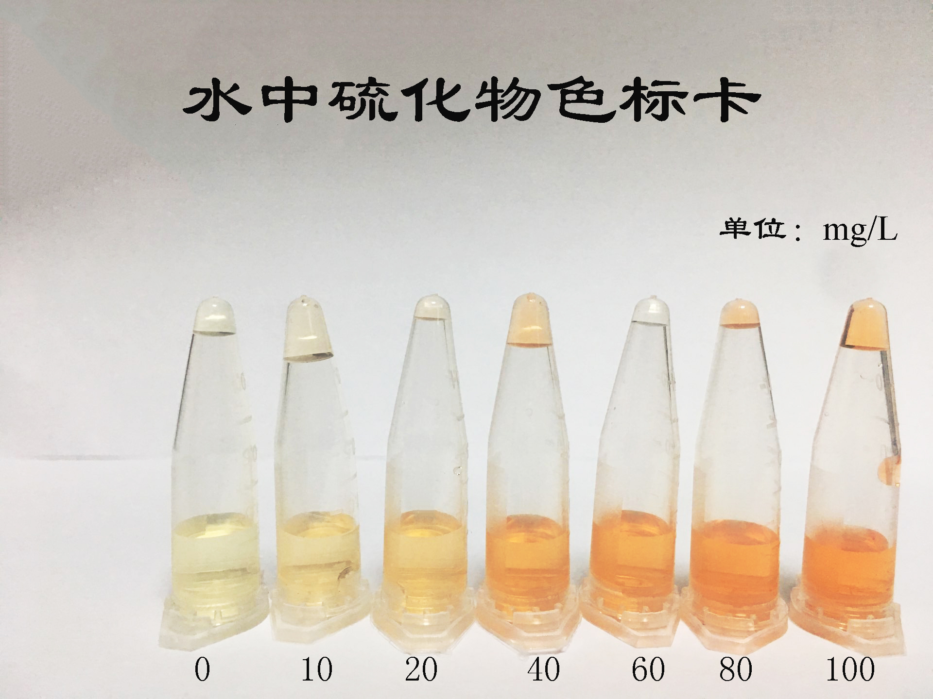 2.2:呈現深黃色和深橘色為硫化物(S2-)陽性結果,橙色深度與硫化物的濃度成正比,檢出限1 mg/kg,(1 ppm)。橙色越深表明味精硫化鈉含量越高。(見比色卡)