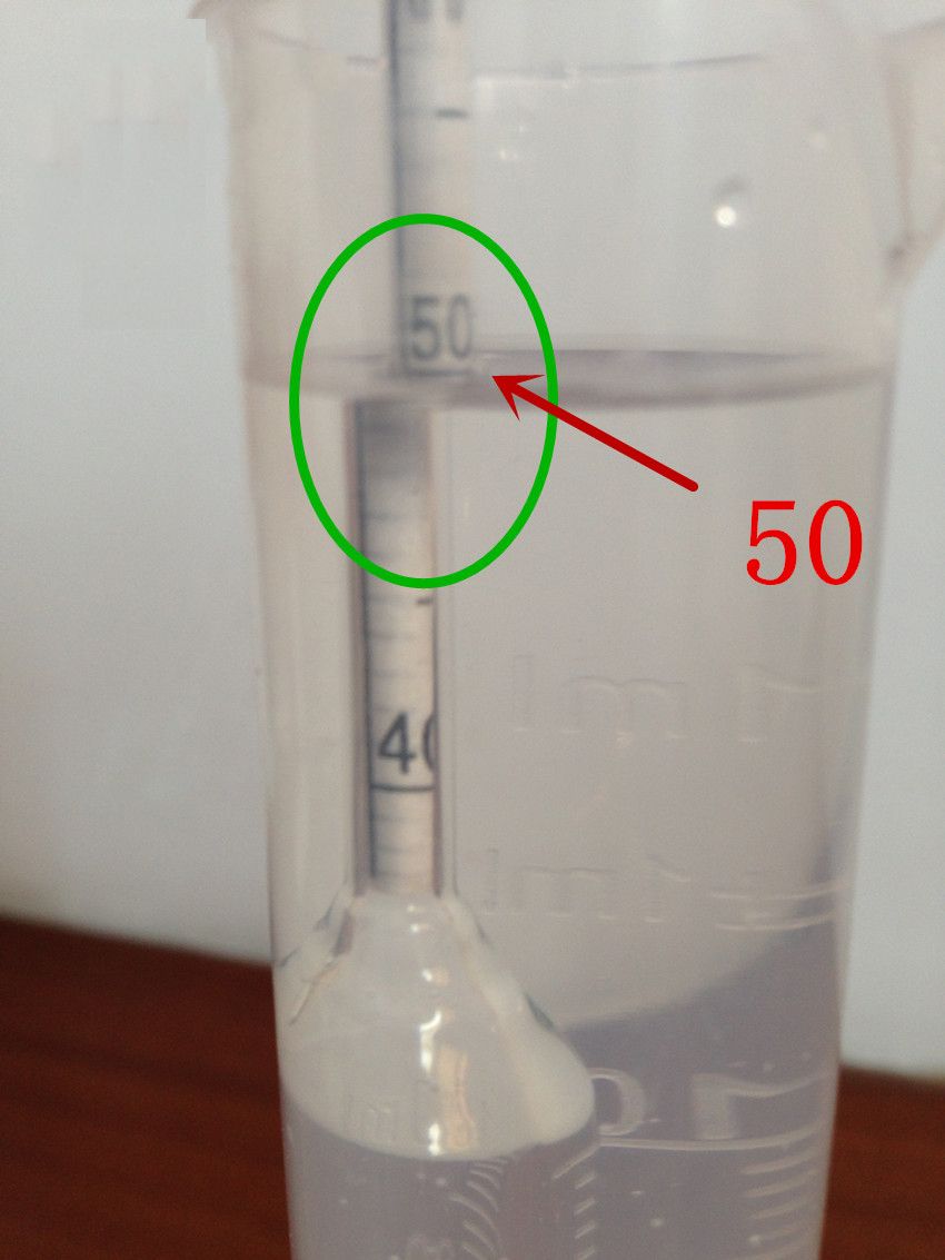 1.3:讀數按彎月面下緣讀數,觀察者的眼睛應稍低于液面,使看到的液面成橢圓形,然后慢慢抬高眼睛位置直至橢圓形變成一條直線為止,讀出此直線的分度表上的位置(下右圖為50);